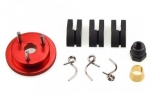 Die Schwungscheibe ist fest mit dem Motor verbunden und mit Stiften versehen, auf denen die Kupplungsbacken montiert werden
