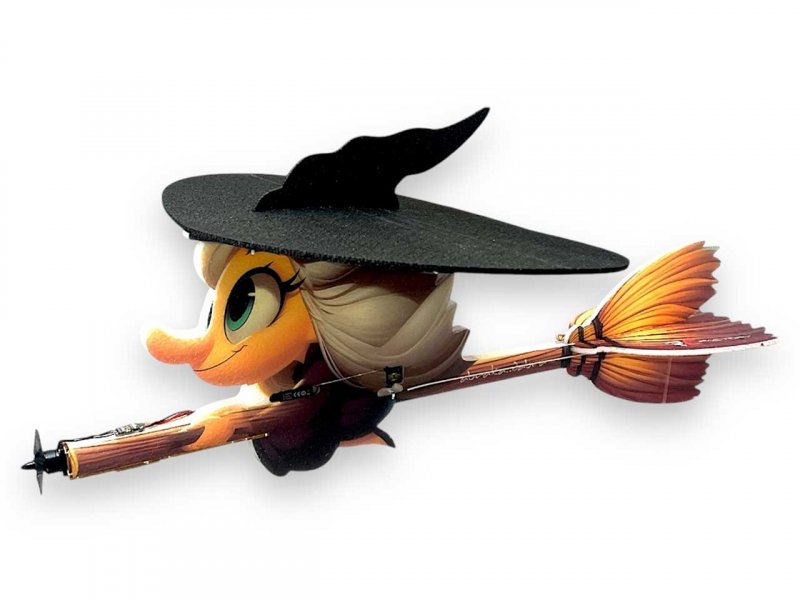Der Auftrieb wird durch den großen Hut erzeugt, die ausreichend massiven Heckflächen verleihen der Hexe außerdem tolle Flugeigenschaften – einfach zu handhaben mit einem sehr ruhigen Flugverhalten.
