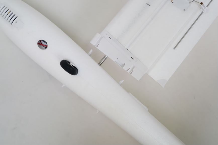 Die Flächenverbinder aus CNC-gefrästem Aluminium werden dabei einfach in den Rumpf reingeschraubt. Die Tragflächen sowie Höhen- und Seitenleitwerk sind mit einem „Quick-Release“-System konstruiert, wobei Flächen und Leitwerke einfach „eingeschnappt“ werden, wodurch das Modell in wenigen Sekunden vollständig montiert oder zerlegt ist.