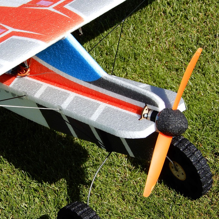 Unbegrenzte Starts und Landungen Mit großen Rädern am Drahtfahrwerk können Sie auf jedem Terrain starten und landen – keine Oberfläche ist ein Hindernis!