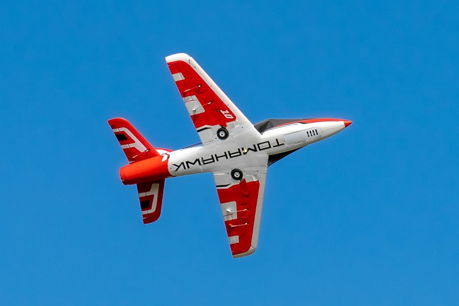 Eigenschaften • Offiziell lizensiert von Tomahawk Aviation • Konstruktion aus extrafestem EPO40-Hartschaummaterial • geringes Gewicht und dennoch hohe Steifigkeit • Brushless 3665-KV2000 Motor und Hobbywing 100A Regler eingebaut • effizienter 80mm 12-Blatt Impeller eingebaut • eingebautes CNC-Einziehfahrwerk, vollständig aus Metall • Abwechselnd blinkende Navigationslichter an den Flügeln und Rolllichter an der Unterseite des Rumpfes • große Reifen, geeignet für den Einsatz auf rauem Gelände • acht 13g Digital Servos mit Metallgetriebe eingebaut • angelenkte Landeklappen für unkritische Landeanflüge • übergroßes Kabinenfach ermöglicht große Akkus und einfache Wartung • neu konzipierte Schnell-Verriegelung der Kabinenhaube • verbesserte Steckverbinder für zusätzliche Sicherheit • kleberlose Montage, Montage mit 10 Schrauben • neues Original Tomahawk Farbdesign • umweltfreundliche Lackierung auf Wasserbasis