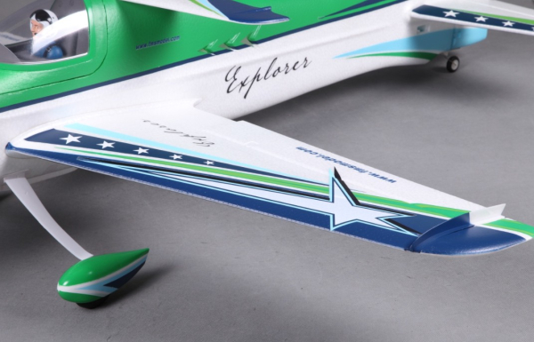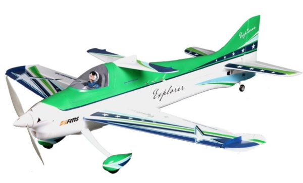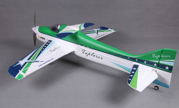 Die F3A Explorer PNP von FMS sieht nicht nur aus wie ein Großer - sie fliegt auch so. Dieses Fertigmodell ist ein Kunstflugzeug der Extraklasse. Gefertigt aus hochfestem EPO-Formschaum, bereits fertig lackiert und mit Aufklebern versehen. Das aufwändige Finish erleichtet die Lageerkennung in der Luft. Der Hochleistungs-Brushless-Motor mit Regler ist fertig eingebaut. Ebenso wie die Servos für Höhen-, Seiten- und Querruder. Die F3A Explorer ist ein präzise fliegendes Modell mit enormen Kunstflugeigenschaften und eignet sich ideal für den Einstieg in die F3A-Klasse oder zum Trainieren neuer spektakulärer Manöver.