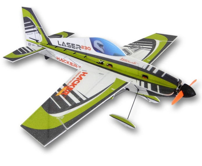 Die LASER 230 von HACKER ist ein Indoor-Modell mit einer echten akrobatischen Besonderheit. Dank des genau ausgewogenen Verhältnisses zwischen der Dicke des Ausgangsmaterials (EPP 5mm) und dem Design der Carbon-Verstärkungen, ist der Bau einfach und schnell und die Struktur ist unglaublich langlebig. Das Modell wird sowohl Anfängern (mit entsprechend reduzierten Ausschlägen) als auch erfahrenen Wettbewerbern gefallen, die die großen Querruderflächen, das Seitenruder und das schwimmende Höhenruder (das Ausschläge bis zu ca. 85° ermöglicht) voll ausnutzen werden.