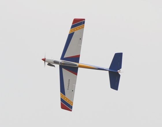 Die Typhoon ist ein Kunstflug Trainer im F3A Retro–Look. Das Modell ist bestens geeignet für den klassischen Kunstflug und kann sowohl mit einem Glühzünder als auch mit einem Elektromotor ausgerüstet werden. Dank der geringen Flächenbelastung sind die Langsamflugeigenschaften sehr gutmütig. Die Typhoon ist fertig aus Holz, sehr leicht gebaut und fertig farbig bespannt. Eine Motorhaube aus GFK gehört genauso zum Lieferumfang wie Kleinteile für die Ruderanlenkungen.