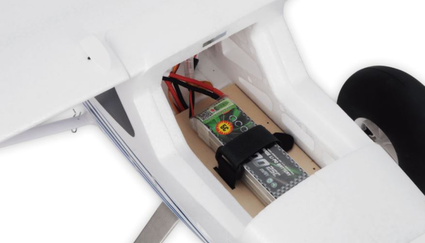 Große magnetische Akkuabdeckung für 3S LiPo Akkus zwischen 1300-2200mAh je nach Vorliebe des Piloten (Wendigkeit oder lange Flugzeit)