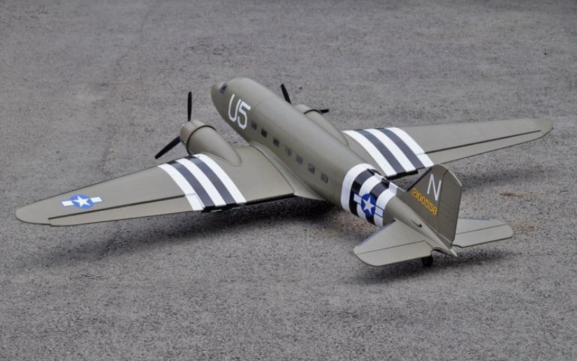 Die Douglas DC-3 hatte ihren Erstflug am 17. Dezember 1935 und wurde im Original über 16.000 mal gebaut. Dabei zeichnete sie sich durch Robustheit, Sicherheit und Wirtschaftlichkeit aus. Erstaunlicherweise kam dieses Flugzeug nicht nur als Verkehrs- und Transportflugzeug, sondern auch als Schleppflugzeug zum Einsatz. Dieses Modell der DC-3 wurde mit besonderer Liebe zum Detail entwickelt und ist eine wunderschöne Verkleinerung des Originals mit sehr guten Flugeigenschaften. Dank 3-teiliger Tragfläche kann das Mittelstück am Rumpf verbleiben und das Modell z.B. quer in den Kofferraum gestellt werden. Am Flugplatz werden dann lediglich die beiden Flächenhälften links und rechts aufgeschoben. Technische Daten Spannweite ca. = 1800mm Länge ca. = 1160mm Fluggewicht ca. = 3200g Motorisierung = Elektro Kurzbeschreibung * ARF Fertigmodell in leichter Holzbauweise (Lasercut) * Fertig bespannt wie abgebildet, sehr schönes Matt-Finish * 3-teilige Tragfläche mit Alurohrsteckung für einfachen Transport * Funktionsfähige Landeklappen wie beim Original * Rumpf mit "echten" Fensterscheiben (keine Aufkleber/Attrappen) * Starres Fahrwerk in Scale Optik (Elektrisches Einziehfahrwerk optional) * Fertig lackierte Motorhauben * Weltweiter Klassiker * Zubehör für RC/Einbau, reich bebilderte Anleitung