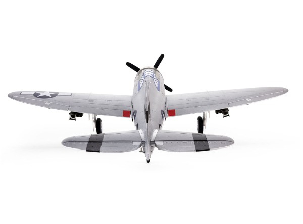 basiert auf einer P-47, die während des Zweiten Weltkriegs mit der 510th Squadron der 405th Fighter Group flog, und verfügt über eine Vielzahl vorbildgetreuer Details, darunter angeformte Blechstöße und ein optional einsetzbarer Zusatztank sowie Bewaffnung, ein Vierblattpropeller und mehr. Darüber hinaus sorgen die funktionellen Landeklappen und das Einziehfahrwerk für ein vorbildgetreues Flugerlebnis. Das 3S- und 4S-kompatible Antriebssystem umfasst einen verbesserten 70A Spektrum™ Avian™ Smart Lite Regler und die BNF® Basic-Version ist mit einem AR631-Empfänger ausgestattet, der Echtzeit-Telemetriedaten zusammen mit AS3X® und optional einsetzbaren SAFE® Select-Technologien bietet. Für die Endmontage ist kein Klebstoff erforderlich, sodass das Modell in kürzerer Zeit flugbereit gemacht werden kann, als zum Aufladen eines Akkus erforderlich ist. Außerdem ist es praktisch dimensioniert um die Lagerung und den Transport ohne Demontage zu ermöglichen – oder es ist mit abgenommenem einteiligen Flügel noch besser transportabel. Und das Gesamtpaket bietet alles was Warbird-Einsteiger, sowie fortgeschrittene und erfahrene Piloten von dem Modell erwarten – ein leistungsfähigen, handlichen und gutmütigen Warbird!