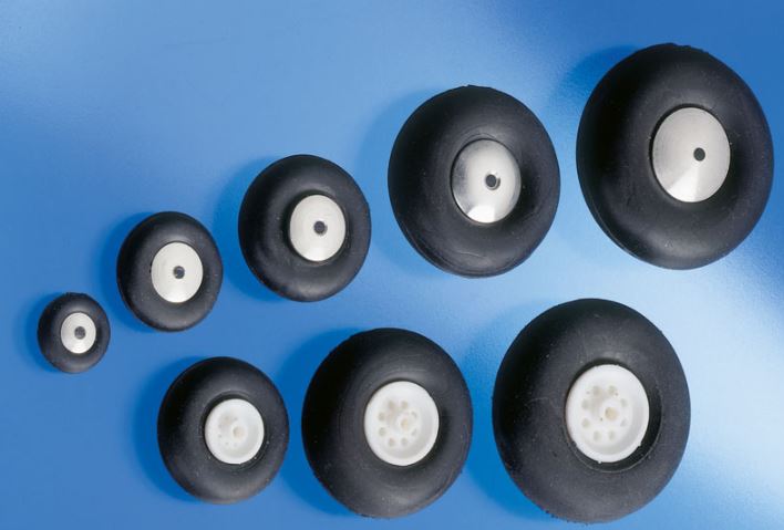 Kleine Räder aus Vollgummi als Spornräder oder für kleine Flugmodelle mit Kunststofffelge.