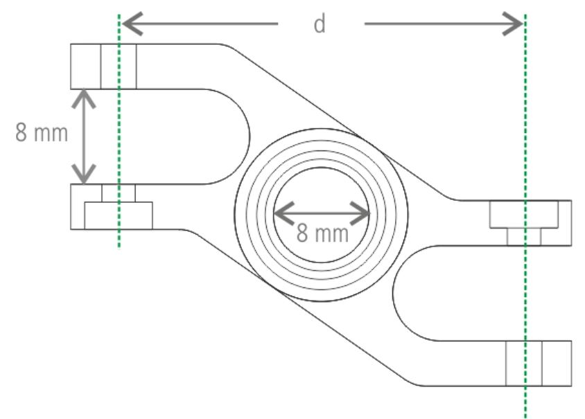 Der Durchmesser der Spinnerkappe beträgt 40 mm. Der Achsabstand (d) beträgt bei diesem Spinner 34 mm. Das bedeutet, dass sich der Durchmesser der Propellerblätter um 16 mm (0,31″) verringert. Beispiel: Ein Propeller mit 12″ Durchmesser hat effektiv an diesem Mittelstück einen Durchmesser von 11,69″ (die Größenangaben bei Klappluftschrauben beziehen sich immer auf die Verwendung eines Mittelstücks mit Achsabstand d=42 mm).
