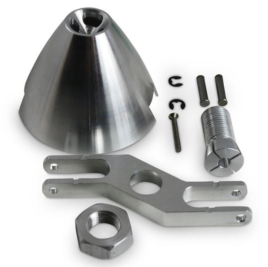 Die D-Power Turbo Spinner aus Aluminium sind leicht und sorgen für eine bessere Kühlung des Motors. Die Z-Gabel ermöglicht ein noch engeres Anlegen der Klappluftschraubenblätter an den Rumpf. Mit einem Klemmkonus werden die Turbo Spinner an der Motorwelle befestigt.