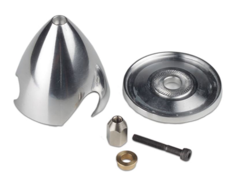 Die CNC gefrästen und polierten zweiteilige Aluminiumspinner sind für 2- oder 3-Blatt Propeller in vielen Größen verfügbar. Durch die präzise Fertigungsmethode ist absoluter Rundlauf gewährleistet. Die Spinnerkappe samt Rückplatte wird mit einer Zentralschraube und Spezialhaltemutter auf der Kurbelwelle/Mitnehmer montiert (Bitte auf die Gewindemaße der Kurbelwelle/Mitnehmer achten - gegebenenfalls muss eine entsprechende Spinnerhaltemutter und Distanzbuchse extra bestellt werden). Lieferung komplett mit Spinnerhaltemutter, Distanzbuchse und Befestigungsschraube. Details zum Lieferumfang siehe Tabelle unten.