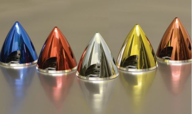 Die bekannte Spinner-Serie von Irvine wird um die neuen Chrom Spinner erweitert. Dabei erstrahlen die auf Hochglanz polierten Spinnerkappen in den Farben Blau, Rot, Silber, Gelbgold und Kupfer. Die Spinner sind aus luftfahrtzugelassenem Aluminium CNC-gefräst und bestechen durch perfekten Rundlauf und geringes Gewicht. Im Bereich der Luftschraubenausschnitte lässt sich das Material einfach bearbeiten, um die Spinnerkappe ggf. auf größere Propeller anzupassen.