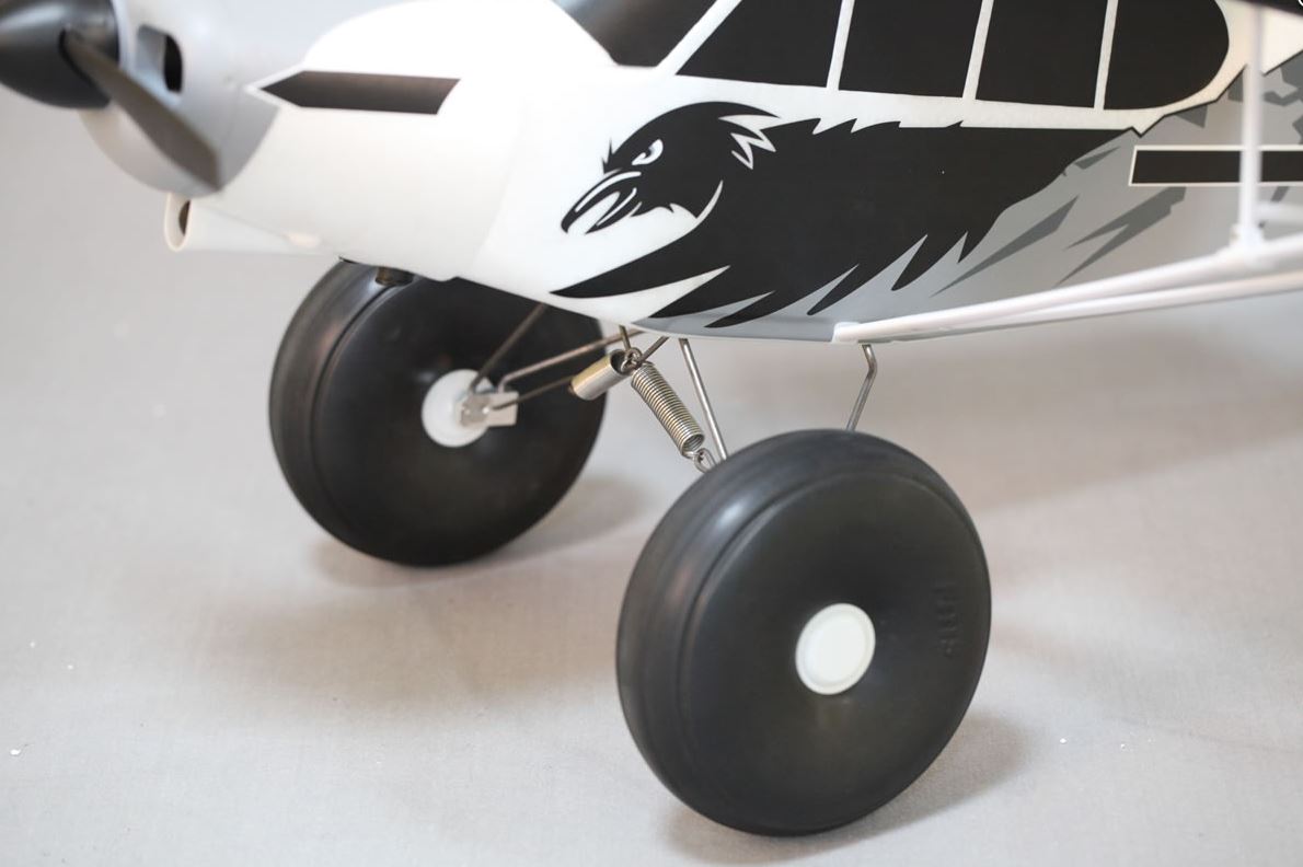 Das Modell Wie auch das Vorbild verfügt die PA-18 Super Cub von FMS über hervorragende Kurzstart und STOL (short takeoff and landing)-Eigenschaften. Das Modell kann nach weniger als 3 Metern in die Luft gebracht werden! Dank der funktionsfähigen Landeklappen und dem Flächenprofil lässt sich die Super Cub sehr langsam und vorbildgetreu fliegen. Die überdimensionierten Ballonreifen und das gefederte Metall-Fahrwerk machen Starts- und Landungen auch auf hohen Graspisten und unebenem Terrain möglich. Zudem ist ein Schwimmerset optional erhältlich.