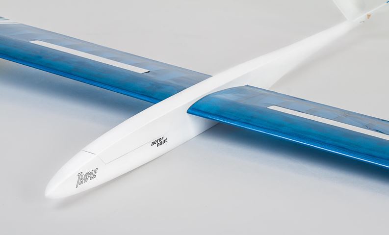Dieses völlig neu entwickelte Modellkonzept bietet einen formschönen Rumpf mit V-Leitwerk (wahlweise als Segler oder Elektrosegler aufzubauen – beide Versionen sind im Baukasten enthalten) und drei verschiedene Spannweiten. Alle Flügel können beliebig am Rumpf angesteckt werden. Ganz ohne Werkzeug, mit starker Magnetsicherung. So ist ein schneller Wechsel auch auf dem Fluggelände möglich. „Triple speed“ hat 178 cm Spannweite, eine einfache V-Form und lange Querruder. Das Profil hat eine gerade Unterseite und ermöglicht so rasante Flüge und herrlichen Segelkunstflug. „Triple R.E.S.“ hat 199 cm Spannweite sowie eine höhere V-Form als der „Triple thermic“. Konform zu den RES-Wettbewerbsregularien wird das Modell nur über Seiten- und Höhenruder sowie Störklappen gesteuert. „Triple thermic“ hat 255 cm Spannweite und ist ausgestattet mit Querrudern und Störklappen. Das Profil ist auf Thermikflüge ausgelegt und verleiht dem Modell gutmütige und leistungsfähige Flugleistungen.