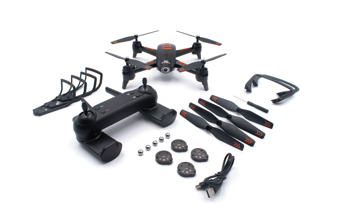 Die Zweiblatt-Luftschrauben beschleunigen das Modell in kürzester Zeit auf großartige Höchstgeschwindigkeiten und trotzdem kommt die Drohne auf eine sagenhafte Flugzeit von rund 15 Minuten!