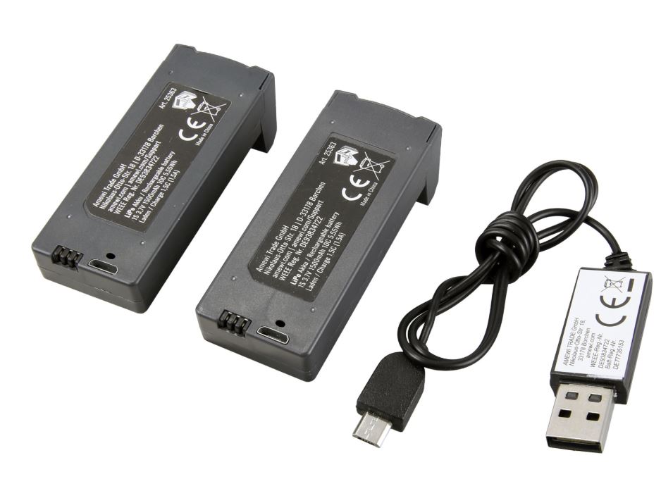 Lange Flugzeit von 30 (2x15) Minuten dank zwei Akkus im Lieferumfang