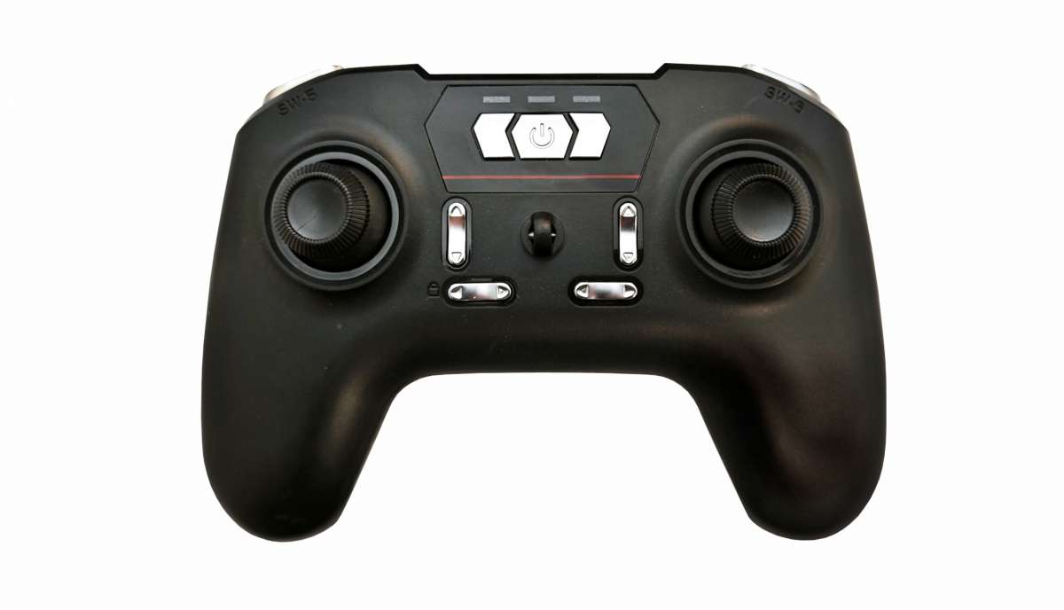 Hochwertiger Sender mit vielen Funktionen und in ergonomischer Form (Gamepad für eine leichte Handhabung auch für ungeübte Piloten