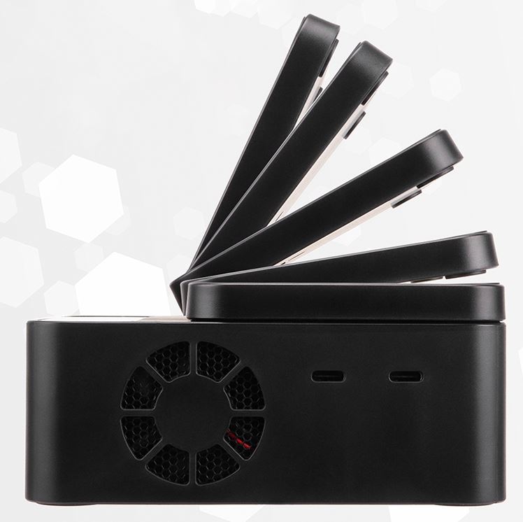 Dank des integrierten Netzteils mit 200W Leistung kann Zuhause an der 230V Steckdose zügig mit bis zu 200W Leistung geladen werden, diese teilen sich je nach Bedarf pro Port auf.