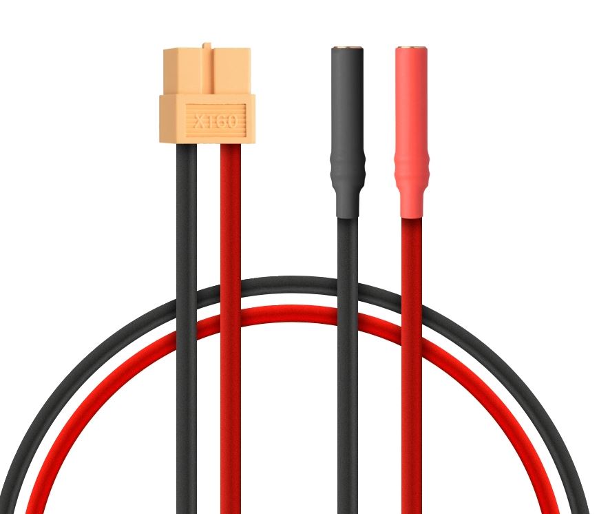 Ladeadapter XT60(B)-> GK4(Buchse) 7cm 14awg Adapter für Ladekabel 4mm Bananenstecker Ladekabel (Reduktion) für Ladegeräte mit XT60-Output zum Laden mit Original-Ladekabeln mit 4mm Bananensteckern. Länge 7 cm, 14AWG.