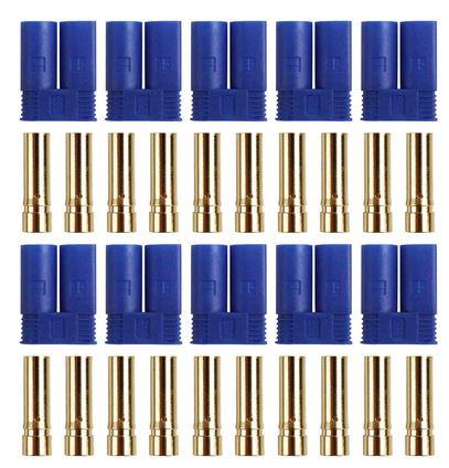 Die Steckverbinder vom Typ EC5 bestehen aus vergoldetem Messing. Durch die Goldbeschichtung werden die Leitfähigkeit sowie Korrosionsbeständigkeit erhöht, aber auch der durch häufiges Zusammenstecken und Auseinanderziehen von Stecker und Buchse entstehende Abbrand vermindert, was der Lebensdauer zugutekommt. Mit nur 0,4 mOhm ist der elektrische Widerstand der Steckverbindung sehr gering und ermöglicht kurzzeitig eine Strombelastbarkeit von bis zu 90 A. Um dieses Leistungspotenzial zu erreichen, wird die Verwendung von hochwertigen Silikonkabeln mit Kupferlitzen von 10 AWG bzw. 6 mm² Drahtdurchmesser empfohlen. Gehäuse und Buchsen des EC5-Systems bestehen aus schlagzähem Nylon, das beim Löten temperaturbeständig bleibt und sich nicht sofort verformt.