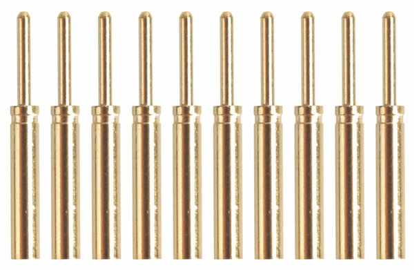 Die Steckverbinder mit 0,8 mm Kontaktdurchmesser bestehen aus vergoldetem Messing. Durch die Goldbeschichtung werden die Leitfähigkeit sowie Korrosionsbeständigkeit erhöht, aber auch der durch häufiges Zusammenstecken und Auseinanderziehen von Stecker und Buchse entstehende Abbrand vermindert, was der Lebensdauer zugutekommt.