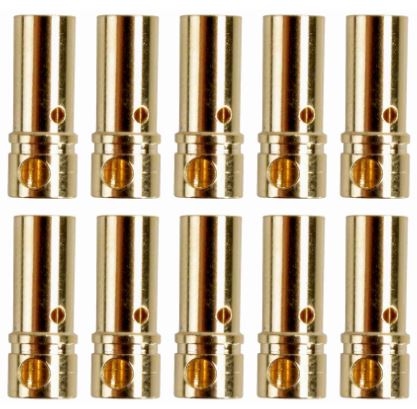 Die Steckverbinder mit 3,5 mm Kontaktdurchmesser bestehen aus vergoldetem Messing. Durch die Goldbeschichtung werden die Leitfähigkeit sowie Korrosionsbeständigkeit erhöht, aber auch der durch häufiges Zusammenstecken und Auseinanderziehen von Stecker und Buchse entstehende Abbrand vermindert, was der Lebensdauer zugutekommt. Mit nur 0,45 mOhm ist der elektrische Widerstand der Steckverbindung sehr gering und ermöglicht kurzzeitig eine Strombelastbarkeit von bis zu 50 A. Um dieses Leistungspotenzial zu erreichen, wird die Verwendung von hochwertigen Silikonkabeln mit Kupferlitzen von 14 AWG bzw. 2,5 mm² Drahtdurchmesser empfohlen.