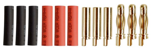 Goldkontakt-Stecker/-Buchse 4mm "L" +Schrumpfschläuche 3Paar