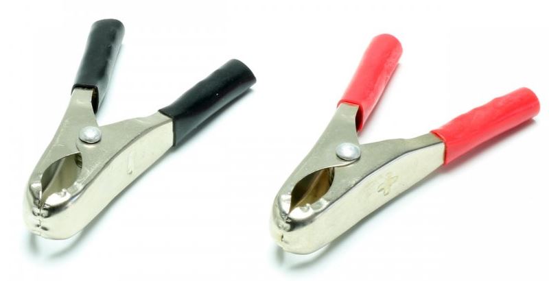 Batterie Klemmen Set (Abgreifklemmen). Es können Kabel angelötet bzw. angekrimpt werden.
