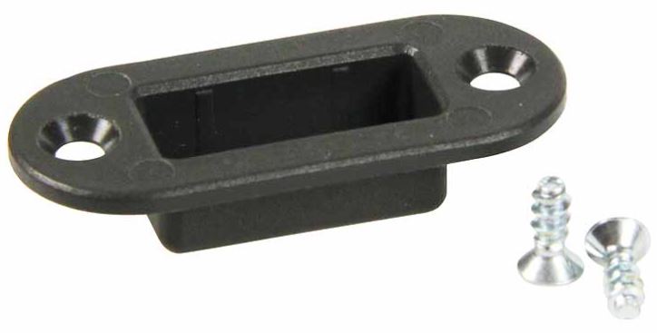 der Halter wird auf 1 Seite befestigt und darin dann nach Belieben Stecker oder Buchse eingesetzt