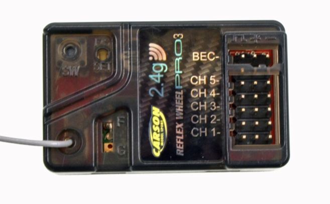 Nutze deinen Sender für weitere Modelle! Der CARSON 5-Kanal Ergänzungsempfänger Reflex Wheel PRO 3 2,4 GHz mit Failsafe und BEC-Funktion passt in viele Auto- und Bootsmodelle. Seine kompakten Maße machen ihn zum idealen Begleiter in deinem Modell. Passend zum Sender Reflex Wheel Pro3 und Reflex Wheel Pro3LCD sowie Reflex Stick 2 und Reflex Stick Multi.