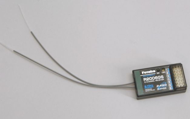 Kleiner, leichter 2.4 GHz S-FHSS 6-Kanal Empfänger mit Antennen-Diversity.