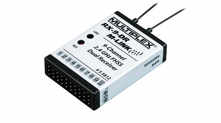 Ein hochwertiger, in modernster SMD-Technik aufgebauter 9-Kanal-Empfänger in MULTIPLEX 2,4 GHz M-LINK-Technologie für alle Arten von Modellen. Durch die kompakten Abmessungen mit Inline-Steckeranordnung passt er auch in Modelle mit beengten Einbauverhältnissen.Als Dual-Receiver verfügt dieser Empfänger über zwei vollständige, parallel arbeitende Empfängerschaltungen (Empfänger-Diversity). Das sorgt in Verbindung mit einer speziellen Signalvorverstärkung für höchste Empfindlichkeit und damit für ausgezeichnete Empfangsqualität und maximale Systemreichweite. Dieser M-LINK Empfänger ist entwickelt und gebaut in Deutschland.