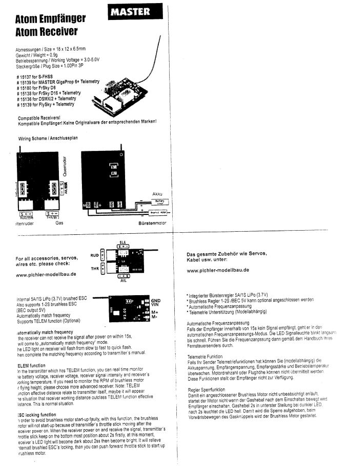 ATOM Empfänger für Spektrum DSMX/2 + Telemetrie