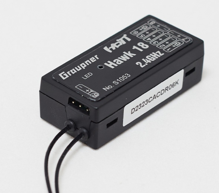 Mit dem Hawk 18 präsentiert Graupner einen leistungsstarken 9-Kanal-Empfänger mit integriertem 3-Achs Gyro und besonders vibrationsunempfindliche 3-Achs Beschleunigungssensor, Diversity-Antennen, Vario und Lagemodus für Flächenmodell oder Rettungsmodus und Lagemodus für Helikopter.