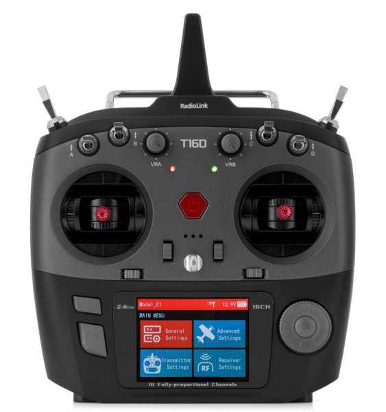 T16D ist ein 16-Kanal-Computersender für Freizeit-Modellbauer. Er ermöglicht die Einstellung von Grundfunktionen wie Servoumkehr und verfügt über eine Reihe von Mixern zur Steuerung einer breiten Palette von Modellen – dazu gehören Akro-Motormodelle, Segler, Multikopter, Autos und andere Landfahrzeuge und Schiffe. Er kann mit einem internen HF-Teil mit FHSS-Übertragungssystem (gleich wie bei T8FB/T8S oder bei den RadioLink Pistolensendern R4GS/R6GS/R8X) arbeiten. Dieser Sender ermöglicht aber auch den Anschluss von externen HF-Modulen ELRS oder TBS-Crossfire mit großer Reichweite. Er verfügt über ein praktisches Gehäuse, das sehr gut in der Hand liegt, mit klassischem und bewährtem ergonomischem Bedienkonzept.