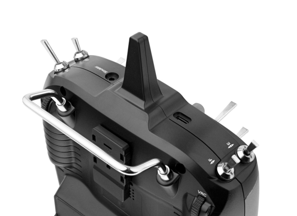 Bedienelemente: Präzise Kreuzregler mit einstellbarer Kraft der Neutralisationsfedern und der Möglichkeit, die arretierte Gasachse nach links oder rechts zu verschieben, werden zur Steuerung der Hauptfunktionen verwendet. Dadurch können Sie die Betriebsmodi der Kreuzregler 1-4 frei wählen. Die digitalen Trimmungen verfügen über akustische Signale für die Schrittfolge und Mittellstellung. Sie sind leicht exzentrisch angeordnet und gut zu erreichen. Weitere Kanäle können mit zwei Drehknöpfen auf der Vorderseite und zwei Drehreglern mit Neutralisierung auf der Rückseite des Senders gesteuert werden. Acht Schalter (drei 3-Positions- und fünf 2-Positionsschalter) können als Kanalschalter oder zum Ein-/Ausschalten von Programmfunktionen verwendet werden. Ein Paar Tasten und ein Programmierrad/eine Programmiertaste sowie ein 2,8-Zoll-LCD-Farbdisplay mit einer Auflösung von 320×240 Punkten ermöglichen eine einfache Programmierung. Der Sender verwendet das freeRTOS Betriebssystem.