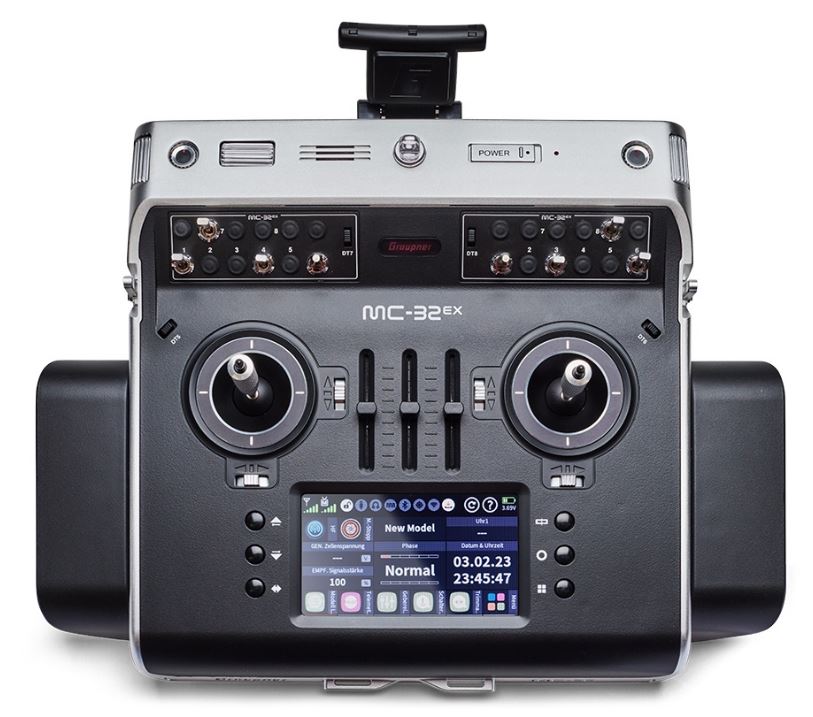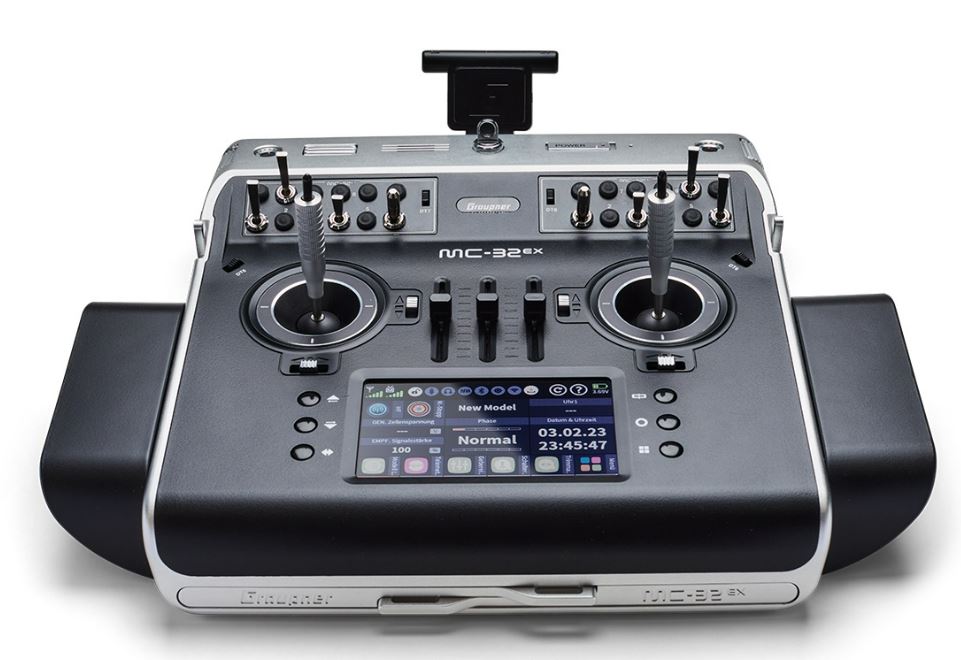 VOLLE KONTROLLE – VOLLE FUNKTIONALITÄT Die Graupner mc-32 EX HoTT kommt ohne Zusatzmodule auf echte 32 Kanäle in der Grundausstattung! Das bietet Dir grenzenlose Funktionalität und Kontrolle für jegliche Art von Modellen. Wähle aus 5 verschiedenen Modelltypen wie Flugmodelle (mit Elektro-, Verbrenner- oder Turbinenantrieb), Helikopter, Multikopter, Fahrzeuge und Boote. Speichere Deine verschiedenen Modelle auf jeweils einem der 999 Modellspeicher ab. 12 Phasen (Ebenen) genannt und 16 Kurvenmischer können dabei global oder phasenabhängig programmiert werden.