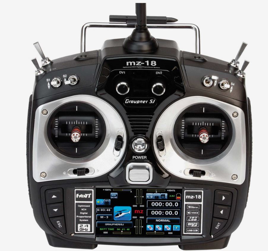 Die Graupner Fernsteuerung mz-18 mit 9 Kanälen ist der perfekte Sender für nahezu alle Flugmodelle. Der Sender eignet sich besonders für fortgeschrittene RC-Piloten. Die bewährte Graupner 2,4 GHz HoTT-Technologie garantiert störungs- und verzögerungsfreie Übertragung, auch über hohe Reichweiten. Die Graupner mz-18 verfügt über ein 3,5 TFT Farb-Touch-Display. Empfangene Telemetrie-Daten können so übersichtlich abgelesen und Programmierungen direkt am Sender vorgenommen werden. Als zusätzliche Sicherheit verfügt die mz-18 über eine intelligente Sprachausgabe - über Lautsprecher oder Kopfhörer. Diese gibt Telemetriedaten, Warnungen, Alarme und Vario-Signale durch.