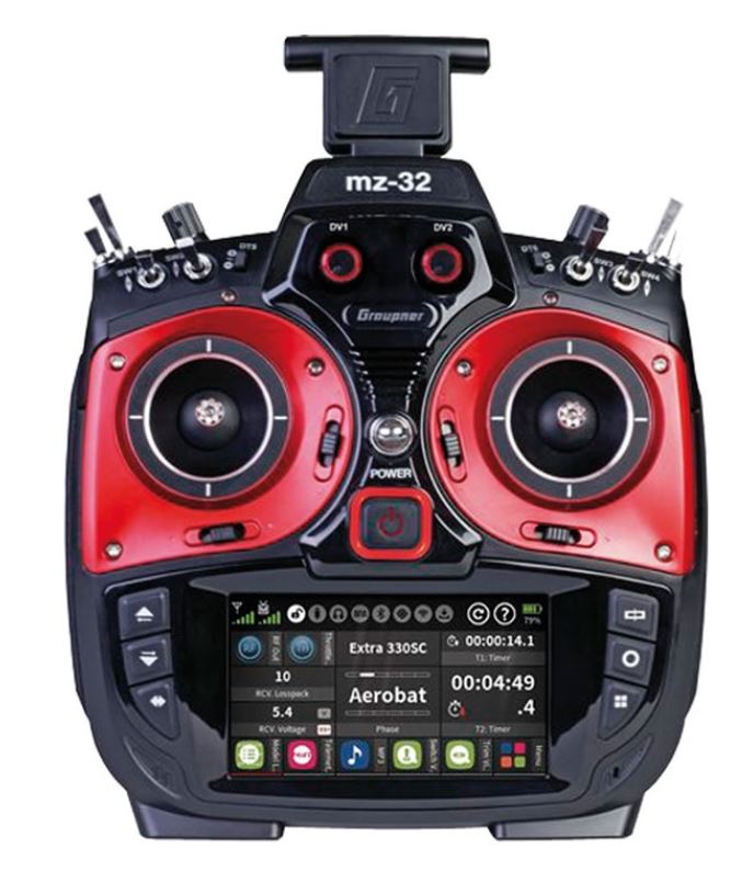 Die mz-32 bringt Dich ganz nach vorne! Die Graupner mz-32 HoTT ist der erste Sender am Markt, der ohne Zusatzmodule echte 32 Kanäle in der Grundausstattung zur Verfügung stellt! Es können 5 verschiedene Modelltypen gewählt werden wie Flugmodelle mit Elektro-, Verbrenner- oder Turbinenantrieb, Helikopter, Multirotor, Fahrzeuge und sogar Boote. Sie kann 999 Modelle speichern und abrufen, hat 12 Flugphasen und 16 Kurvenmischer, die global oder flugphasenabhängig programmiert werden können! Die vierfach kugelgelagerten Knüppelaggregate, mit einer Auflösung der Hall Sensoren von 4096, sorgen für ein unbeschreibliches und nie dagewesenes Gefühl der Kontrolle über das Modell. Die Aggregate halten auch schlechtem Wetter stand und sind einfach und komfortabel von der Rückseite des Senders her zugänglich, um diese auf Deine Vorlieben einzustellen. Die mz-32 HoTT ist mit einem dualen, redundanten 2,4 GHz HF-System ausgerüstet. Eine polarisierende Patch und eine lineare Antenne sorgen für unerreichte Signalqualität und erhöhte Reichweite. Ein langer Tag voller Spaß wird durch den enthaltenen 9000mAh LiPo Akku möglich und erlaubt Dir mehr als 10 Stunden Betriebsdauer!