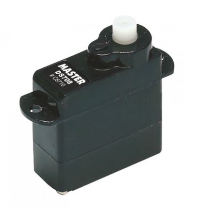 MASTER Servo DS708 Unser beliebtes 4-Gramm Servo jetzt in digitaler Ausführung mit neuentwickelter Elektronik und Glockenankermotor (Coreless Motor). Ideal für kleine Flugmodelle bis 200g wie z.B. Hallenflug. Technische Daten Betriebsspannung = 4,8 -6,0V Stellkraft = 0,5 / 0,6kg Stellzeit = 0,07 / 0,06s @ 45° Breite = 8,0mm Länge = 20,0mm Höhe = 22,0mm Gewicht = 4,5g Digital-Servo Kunststoffgetriebe Glockenanker Motor Anschlusskabel 3-polig JR/Futaba Uni Inkl. verschiedene Steuerscheiben/Hebel, Schrauben