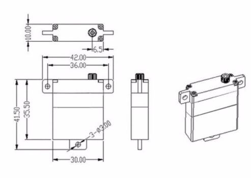 Flächenservo der beliebten 10mm Baugröße mit ausgezeichnetem Preis-Leistungsverhältnis. Gehäuse aus hochfestem, faserverstärktem Kunststoff. Baugleich mit unserem DS3010 jedoch als Hochvolt (HV) Version. Als Sonderzubehör sind spezielle Servohalterungen für den einfachen Einbau in Tragflächen lieferbar.