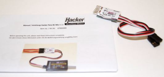 Der Para-Rc Mix ist speziell für das RC-Paragliden und für ferngesteuerte Skydiver/Fallschirmspringer entwickelt worden. Das spezielle Mixprogramm von Höhen- und Seiten-(bzw. Querruder-)funktion ermöglicht ein vorbildgetreues Steuern. Dieser Mixer bewegt auf 50% Steuerweg des Senderknüppels nach rechts eine volle Bewegung des Pilotenarmes von ganz oben nach ganz unten. Nach links entsprechend den linken Arm. Dazu wird jetzt noch die Bremsfunktion hinzugemischt. Wenn der Höhenruder-Steuerknüppel von Nullstellung aus nach unten gezogen wird (50%) so bewegen sich beide Arme proportional von ganz oben bis ganz unten. Links/rechts und bremsen sind somit gemischt, ähnlich wie bei einem Deltamixer, allerdings mit wesentlich mehr Steuerweg (voller Servoweg).