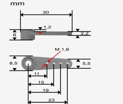 Alu Servohebel 25Z (25T) 30mm Länge für 25Z Servoabtriebe mit 5,9mm Durchmesser