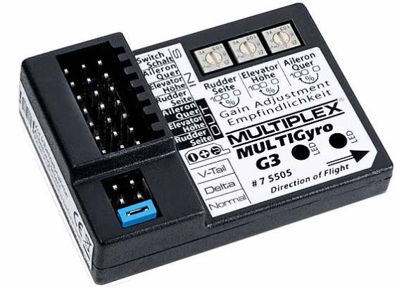 Der MULTIGyro G3 wurde speziell für RC-Flächenmodelle entwickelt und stabilisiert Ihr Flugmodell automatisch. Sie fliegen sofort sicherer und präziser! Das vertraute Flugverhalten des Modells ändert sich kaum, der Flug ist aber viel ruhiger, exakter und unempfindlicher gegen wetterbedingte oder aerodynamische Einflüsse. Das 3-Achs-Stabilisierungssystem ist geeignet für alle gängigen Flugzeugtypen wie: normales Flugzeug, V-Leitwerk oder Delta bzw. Nurflügler.