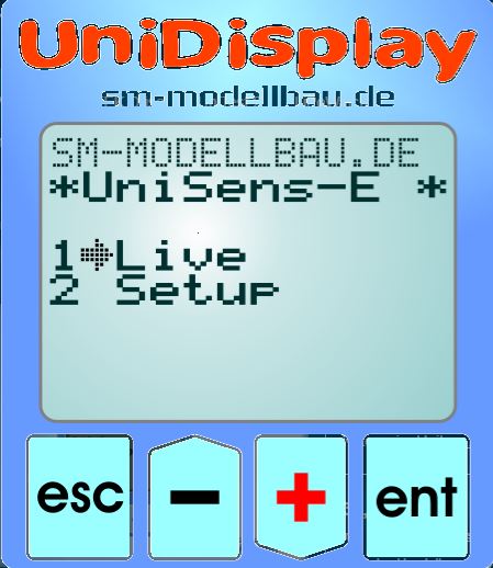 Mit Hilfe des UniDisplays können alle Messwerte unseres UniLog 1 + 2, UniSens-E, GPS-Logger 1 + 2, LiPoWatch, InfoSwitch und JLog2 live angezeigt und Parameter direkt eingestellt werden.