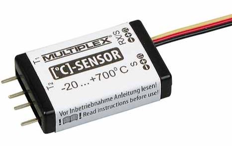Misst Temperaturen von bis zu 700°C, je nach verwendetem Temperaturfühler. Nach Aktivierung des zweiten Messkanals mit der MULTImate (# 8 2094) oder mittels PC-Programm „Sensor DataManager"** und Anschluss eines weiteren Temperaturfühlers (optional) kann eine zweite Temperatur erfasst werden. Der MULTIPLEX MSB-Sensor ist entwickelt und gebaut in Deutschland. Quality Made in Germany!
