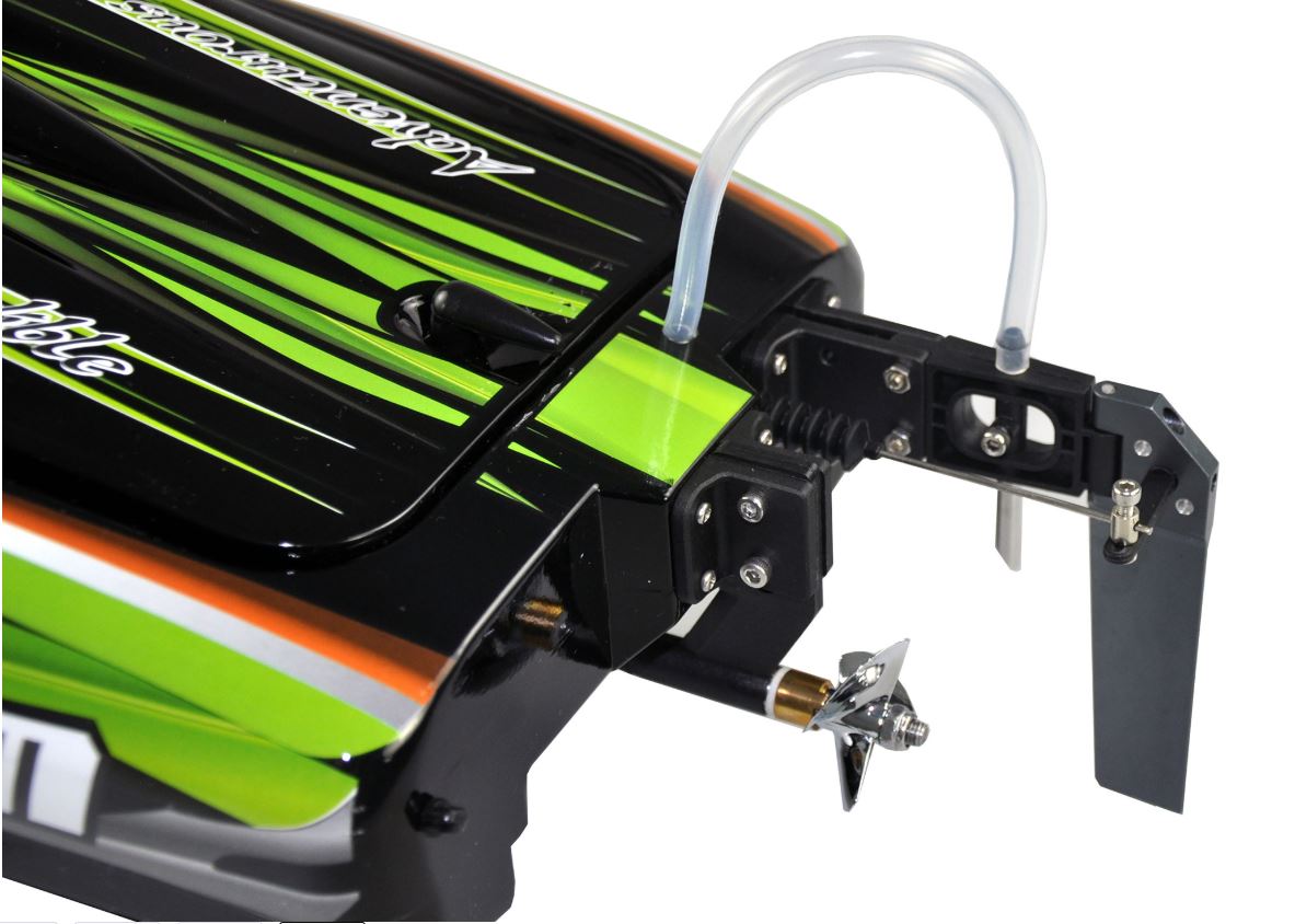 Schneller Rennkatamaran in absolut genialer Optik. Das Farbscheme überzeugt auf Anhieb und die komplette Ausstattung dieses Modells wurde auf den neuesten Stand der Technik gebracht. Der 2815 brushless Außenläufermotor bringt den Katamaran auf atemberaubende 60 - 65km/h "out of the Box" (Akkus nicht im Lieferumfang). Die mitgelieferte 2,4GHz Fernbedienung ist sehr feinfühlig und die Lenkauschläge lassen sich separat einstellen. Somit ist ein realistisches Fahrbild problemlos zu erreichen. Dieses tolle Rennboot überzeugt mit Leistung, Ausstattung und Optik.
