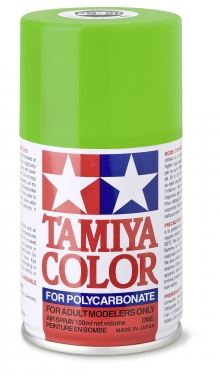 TAMIYA PS = Polycarbonat "Lexan" Sprayfarben sind speziell entwickelt, um unlackierte Bausatzkarosserien zu lackieren. Zahlreiche Farbtöne stehen zur Auswahl und erlauben die individuelle Gestaltung von Modellen. Jede Dose enthält 100 ml hochdeckender Farbe, die Öl- und Kraftstoffresistent sind, dies erlaubt den Einsatz an Nitro-Modellen.