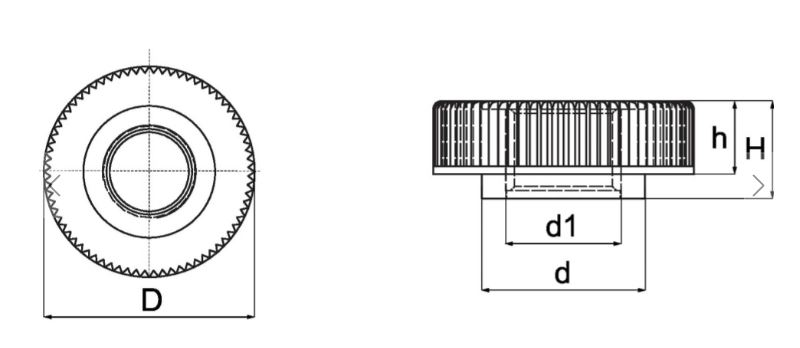 Universell einsetzbare Rändelmutter aus Polyamid mit feiner Rändelung. Ähnlich DIN 467.