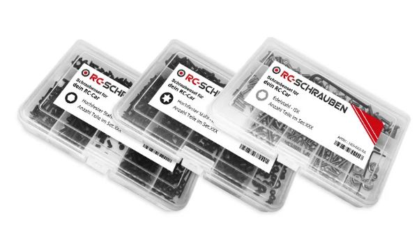 - Es werden 35-50% mehr Schrauben, als im jeweiligen Modell verbaut sind, geliefert